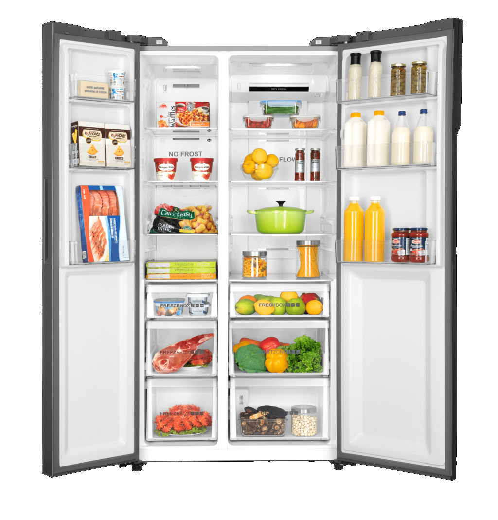 – Tủ lạnh Side By Side 2 cánh – Tổng dung tích (Total Gross Volume) 573 L + Dung tích ngăn đông (Gross Freezer Volume): 234 L + Dung tích ngăn lạnh (Gross Refrigerator Volume): 339
