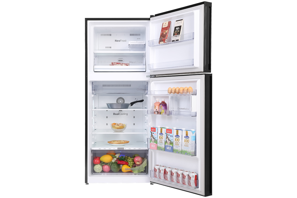 Kiểu tủ: Ngăn đá trên - 2 cánh Dung tích tổng: 409 lít Dung tích sử dụng: 375 lít - 3 - 4 người Dung tích ngăn đá: 98 lít Dung tích ngăn lạnh: 277 lít Công