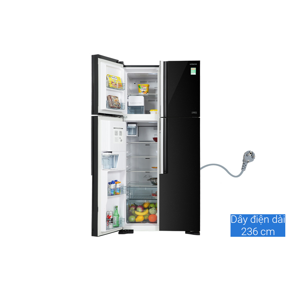 • Hitachi Inverter 540 lít R-FW690PGV7X GBK là tủ lạnh Multi Door 4 cánh phong cách Pháp sang trọng, cửa tủ mặt kính sáng bóng gam màu đen hiện đại, dễ dàng lau chùi giữ bề mặt luôn như mới, 4 cánh độc lập dễ sử dụng, tận dụng tối ưu không gian lưu trữ và hạn chế khí lạnh thoát ra ngoài.