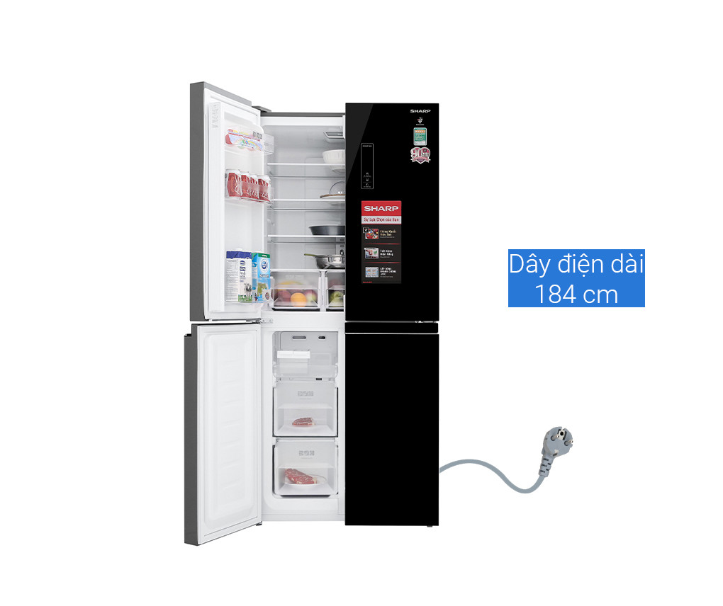 Tủ lạnh Sharp Multi doors 4 cửa, ngăn đá dưới thông minh giúp hạn chế khom lưng Tủ lạnh Sharp Inverter 362 lít SJ-FX420VG-BK vô cùng hiện đại với thiết kế Multi doors 4 cửa,