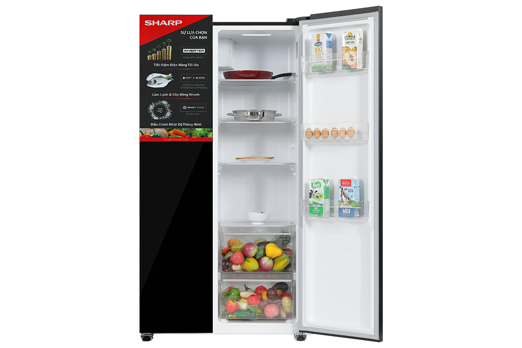- Tủ lạnh Sharp đáp ứng tốt cho nhu cầu bảo quản thực phẩm của các hộ gia đình từ 4 - 5 người nhờ thiết kế dung tích sử dụng 442 lít.