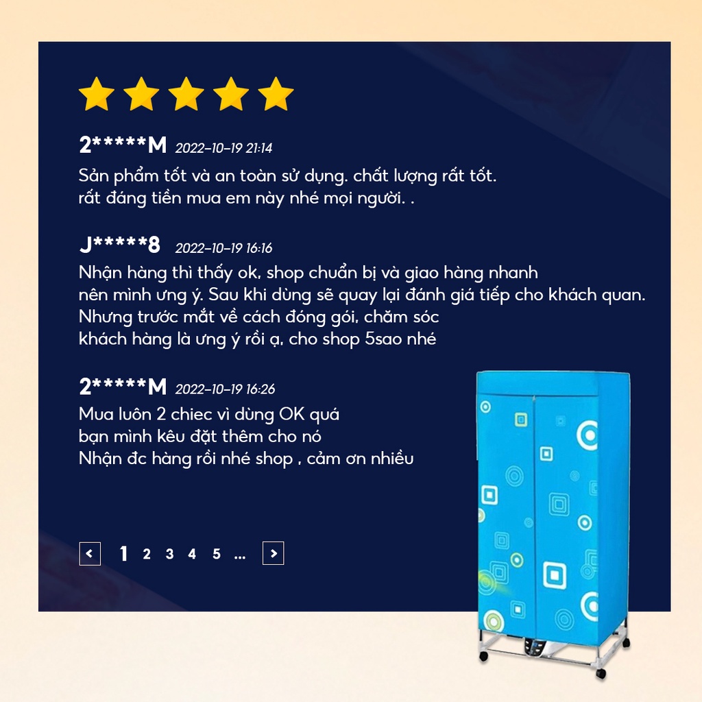 Điểm nổi bật Công suất 1500W, 2 tầng Công nghệ sưởi sấy PTC CERAMIC Đa chức năng sấy khô, sưởi ấm, tủ đựng quần áo Bộ phân tản nhiệt thiết kế 360 độ giúp giúp