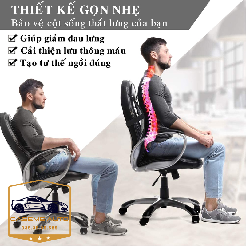 - Với nghiện cứu lâu năm và tỷ mỉ đội ngũ theiets kế đã đưa ra mẫu gối tựa có đường cong viền phù hợp với sự hỗ trợ cột sống người ngồi lái xe hay làm việc giúp nâng đỡ cột sống, tạo cảm giác thoải mái cho người ngồi trên xe hay ngồi làm việc lâu dài trong văn phòng.