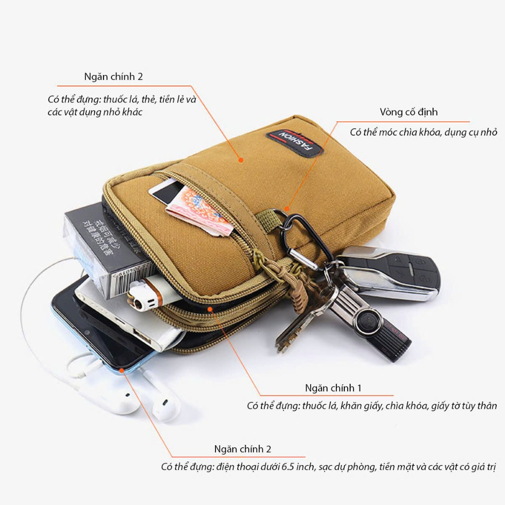 Túi đeo hông cài thắt lưng dây nịt đựng điện thoại, bao thuốc, bật lửa móc khoá cho nam.