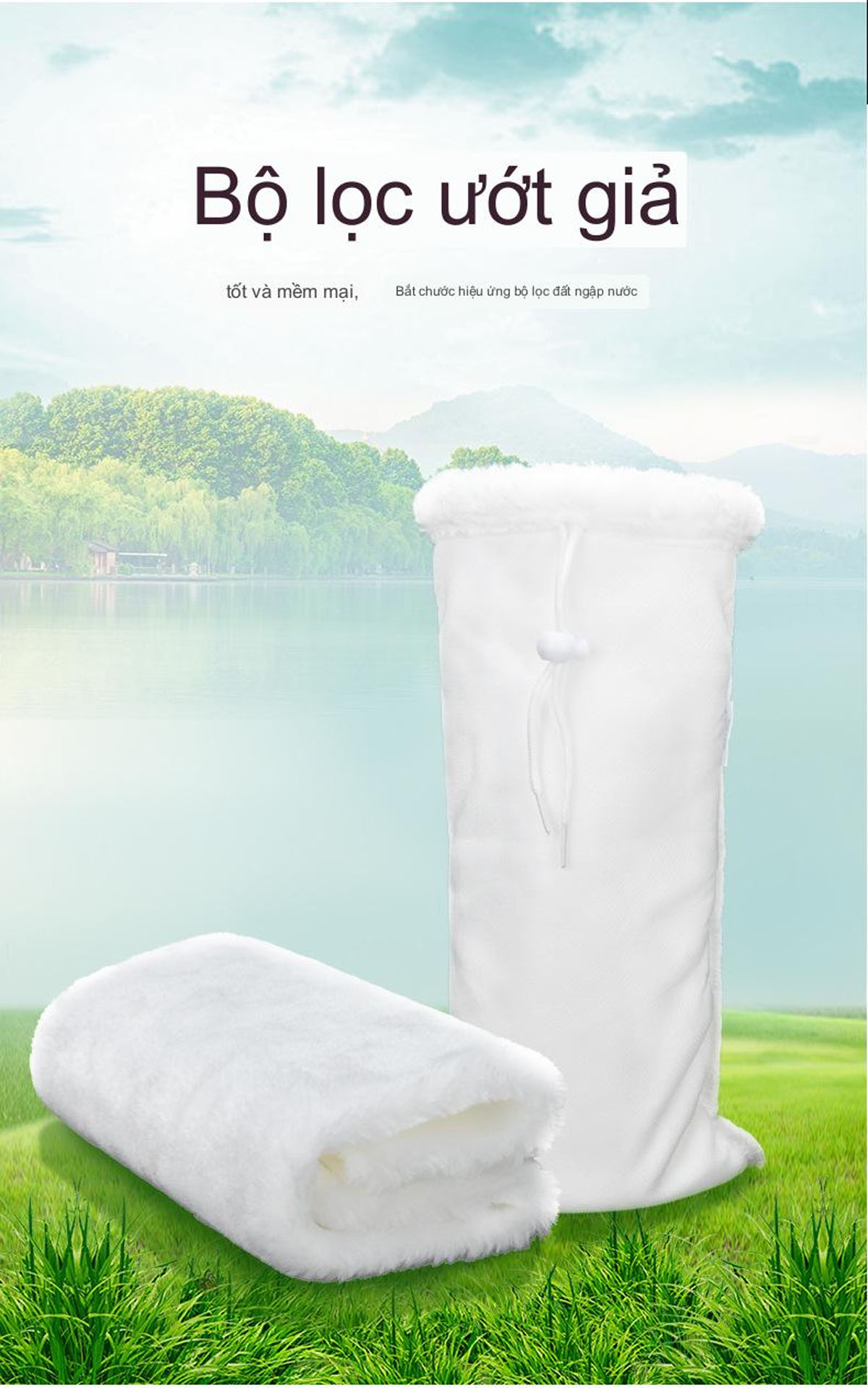 - Túi lọc có quai nhựa dễ dàng thao tác chỉ cần gác túi lọc vào đường ống máy bơm nước vào hộp lọc tràn trên hoặc đường ống hút đáy.