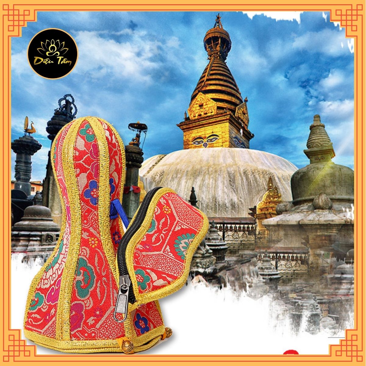 ✨Túi vải gấm hộp đựng chuông chày kim cang Nepal mật tông tây tạng đồ thờ cúng bộ vỏ bao đựng chuông chùy - áo linh chử