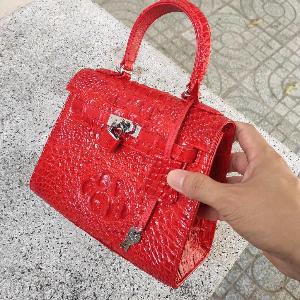Túi được làm liền mạch nguyên tấm da cá sấu lớn rất đẹp và chắc chắn.