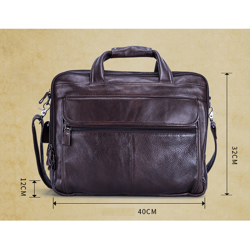 Kích thước : rộng 40cm ,cao 30cm,dày 7cm Phương pháp sản xuất: Thủ công 100% Chất liệu : Da bò cao cấp thiết kế :hiện đại,trẻ trung,sang trọng chức năng: chứa latop 15,6 inh và