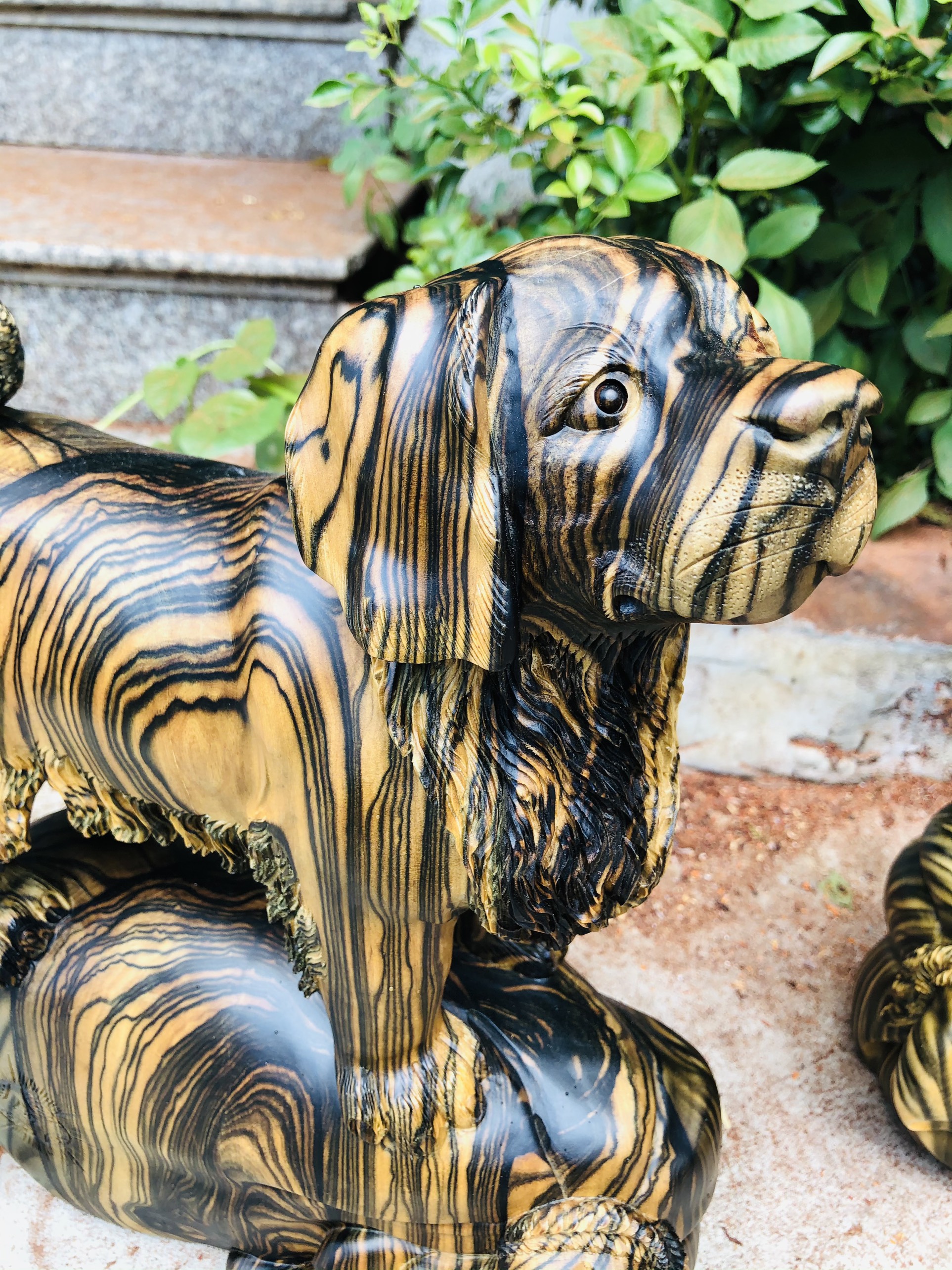 Tượng Chó bằng gỗ Mun hoa Lào đục tay chân thật