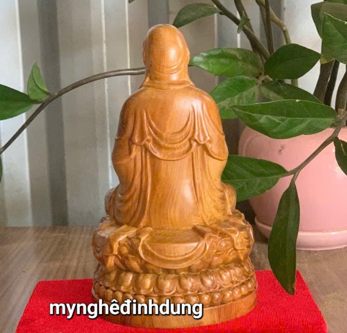 được làm bằng chất liệu gỗ bách xanh liền khối tự nhiên 100% _ Kt cao 15×9×9cm _ Tượng được chạm khắc gọt tỉa vô cùng ti mi tinh xảo kỳ công .Đi hầu hết