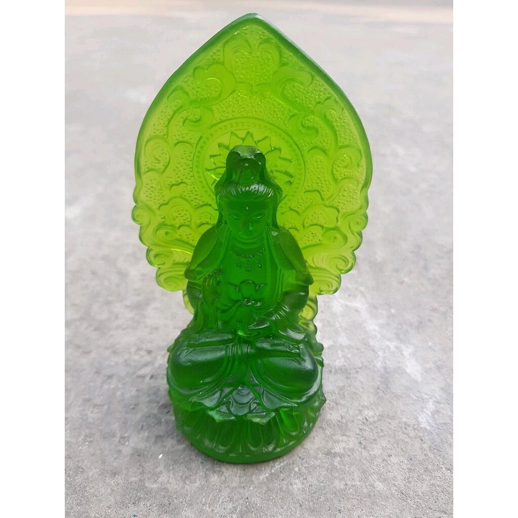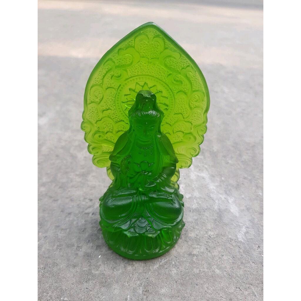 Tượng Phật Bà Quan Âm Mới Đá Lưu Ly Xanh Lá Tươi Đẹp Để Xe Hơi hoặc để bàn cao 12cm đk 7cm đế 5cm Hợp Mệnh Hỏa Mệnh Mộc ạ *** Tượng Phật Bà
