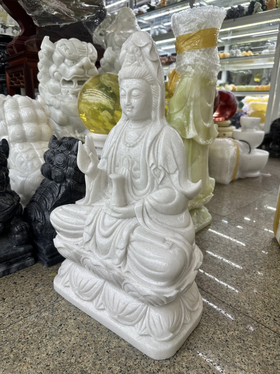✨Tượng Phật Bà Quan Thế Âm Bồ Tát ngồi đài sen cầu bình an đá cẩm thạch trắng - Cao 50 cm