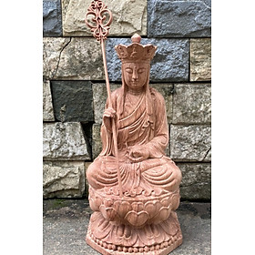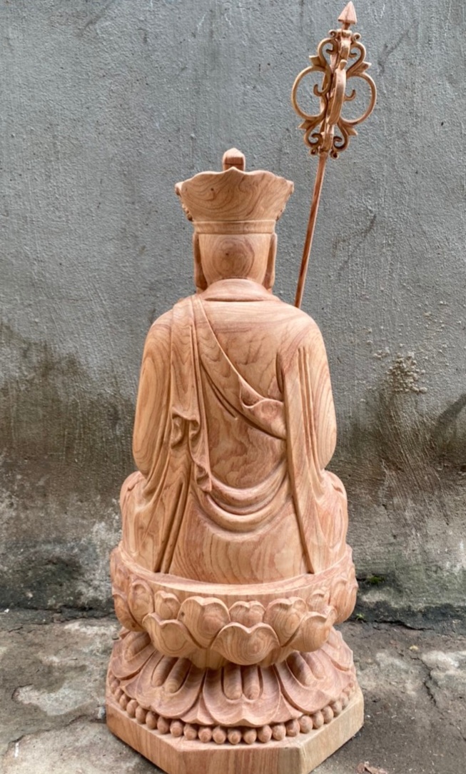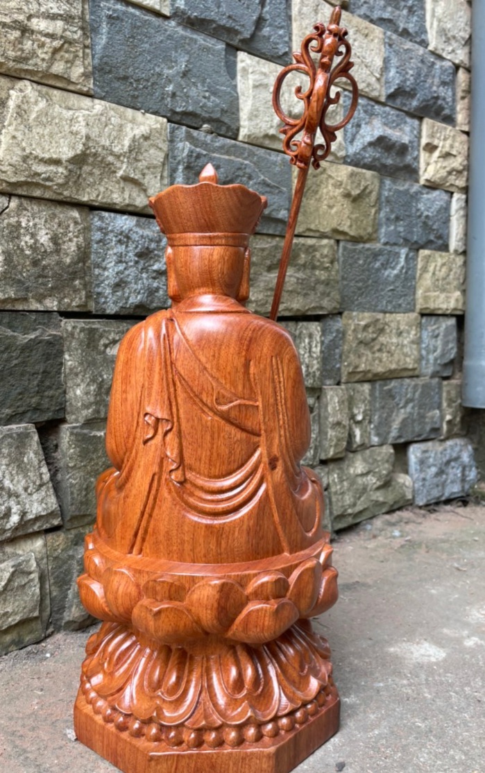 Tượng phật địa tạng vương bồ tát được làm bằng chất liệu gỗ hương đá liền khối tự nhiên 100%  Kích thước cao 40×20×20cm _ Tượng phật địa tạng vương bồ tát được ,điêu khắc trạm trổ vô cùng tỉ mỉ ,Tinh sảo kỳ công .Đi hầu hết tất cả mọi chi tiết góc ngách nội dung hoa văn của tượng .Đều được gọt tỉa ,chỉnh sửa hoàn toàn bằng tay thủ công .Đồng thời tượng được kiểm định kỹ lưỡng khắt khe ,Như cho vào thẩm sấy cho gỗ khô kiệt .Mục đích trống dập nứt vênh mo mối mọt .Đồng thời cho vào trà nhám ,đánh giấy giáp nhiều nước ,sờ mát lạnh .Rồi cho vào phun lót ,làm bóng mờ để giữ lại mầu sắc vân gỗ tự nhiên .Tượng được làm và hoàn thiện ,do bàn tay khối óc tài hoa .Từ những người thợ giàu kinh nghiệm ,Cũng như tay nghề cao trong làng nghề truyền thống .Chính vì thế tượng phật địa tạng vương bồ tát ,đã đáp ứng đầy đủ mọi tiêu trí ( Đẹp bền rẻ ) Thẩm mỹ nghệ thuật với chất lượng tuyệt vời