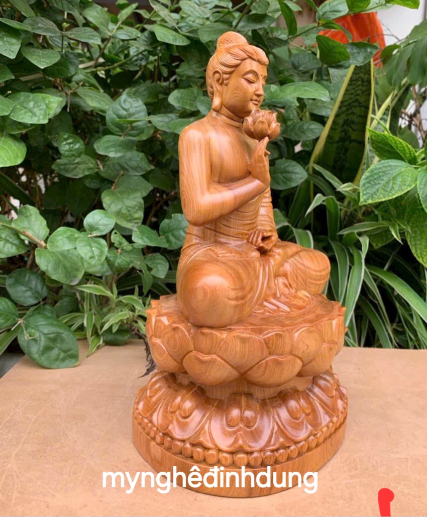 ✨Tượng phật liên hoa bằng gỗ bách xanh thơm nức cao 30x17x14cm