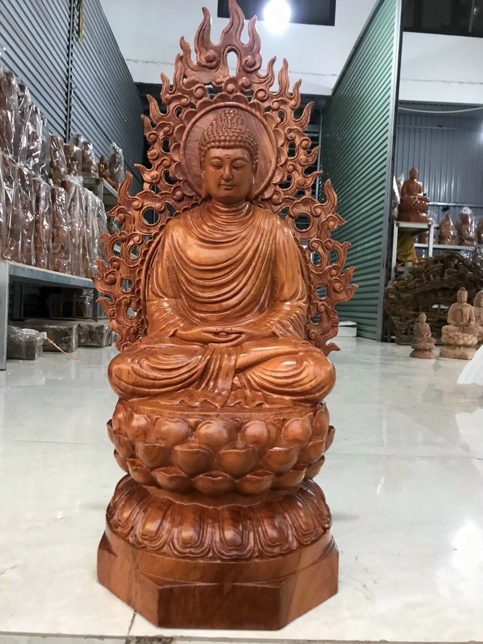 ✨Tượng phật thích ca bằng gỗ hương đá kt cao 40×20×20cm+ lá chắn hòa quang 50cm
