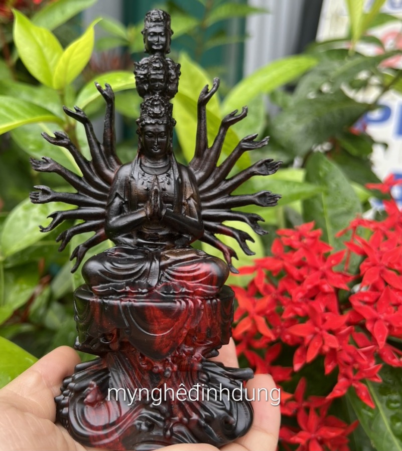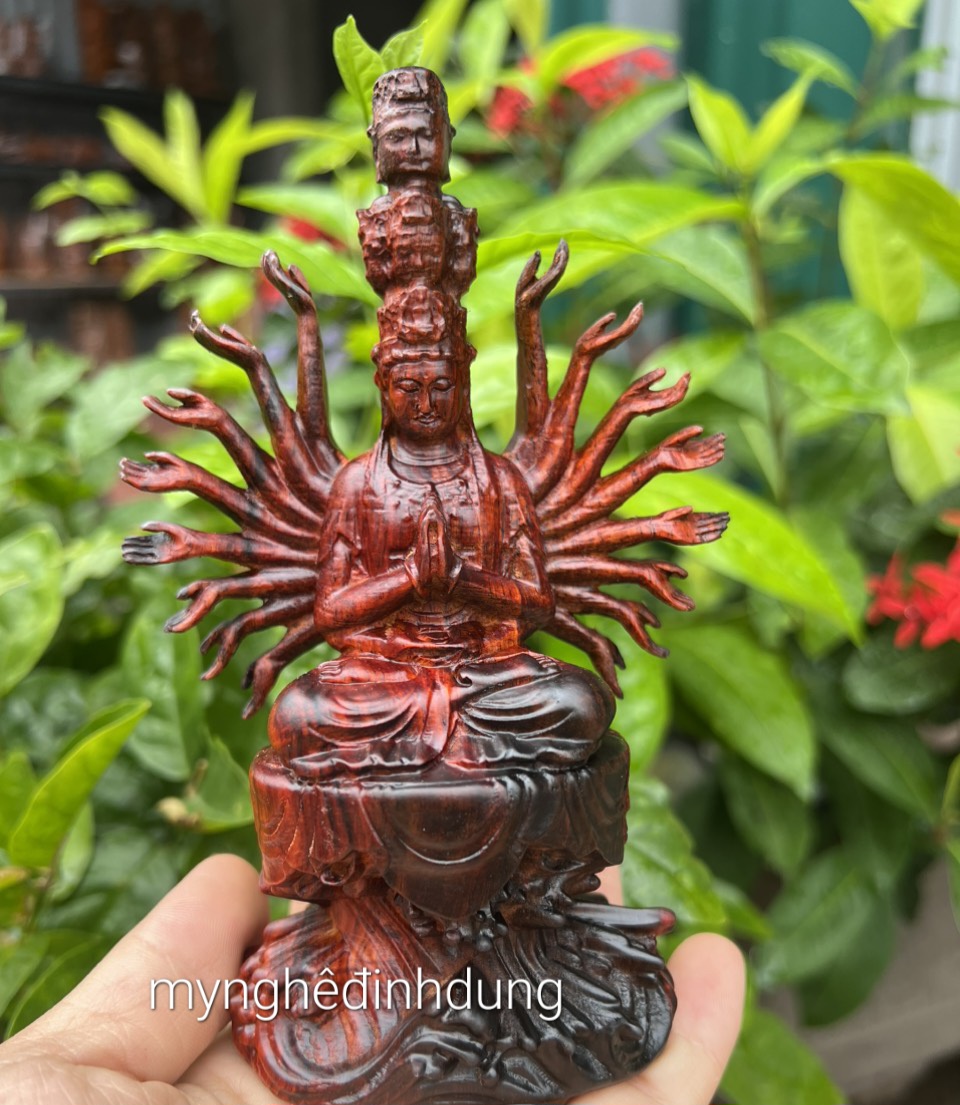 _ Tượng phật thiên thủ thiên nhãn được làm bằng chất liệu gỗ trắc đỏ đen tự nhiên 100% _ kt cao 15x11x6cm _ Tượng được chạm khắc gọt tỉa vô cùng tỉ mỉ tinh