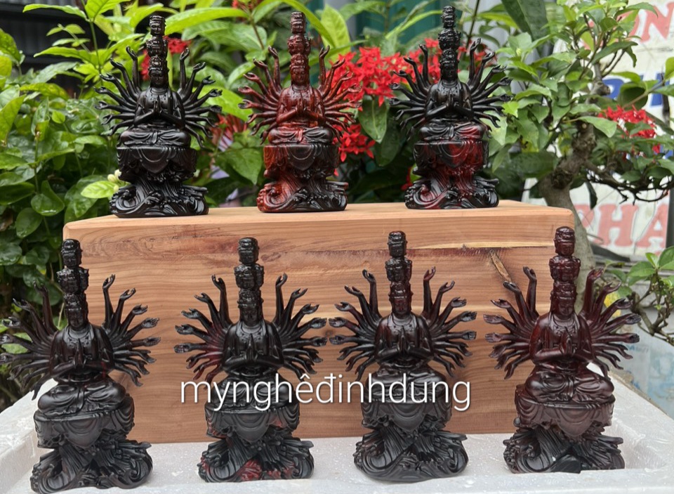 ✨Tượng phật thiên thủ thiên nhãn bằng gỗ trắc đỏ đen kt cao 15x11x6cm
