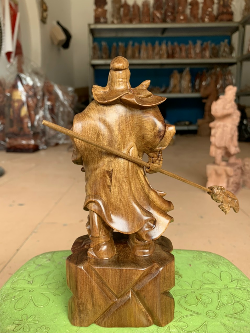 Mua tại Tiktok_ Tượng quan công cầm đao trấn ải được làm bằng chất liệu gỗ bách xanh liền khối tự nhiên 100%