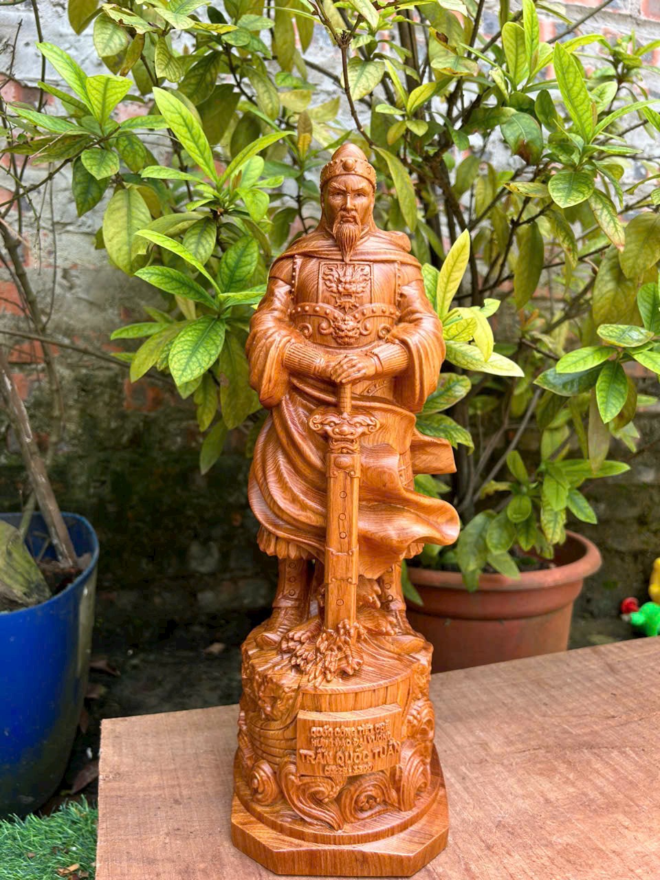 _ Tượng thánh trần quốc tuấn trần hưng đạo vương được làm bằng chất liệu gỗ ngọc Am liền khối tự nhiên 100% _ Kt cao 60cm _ Tượng được chế tác làm và hoàn