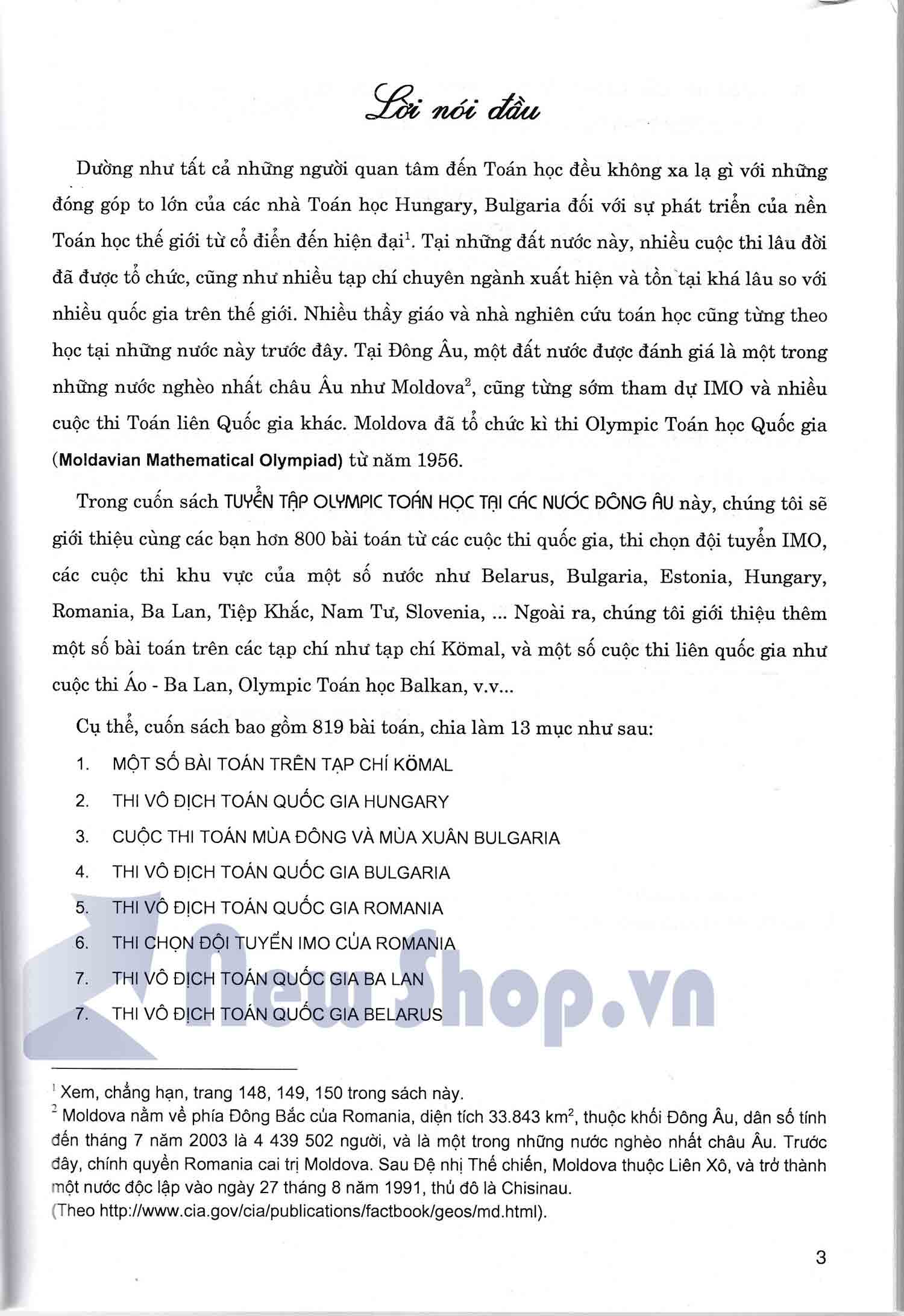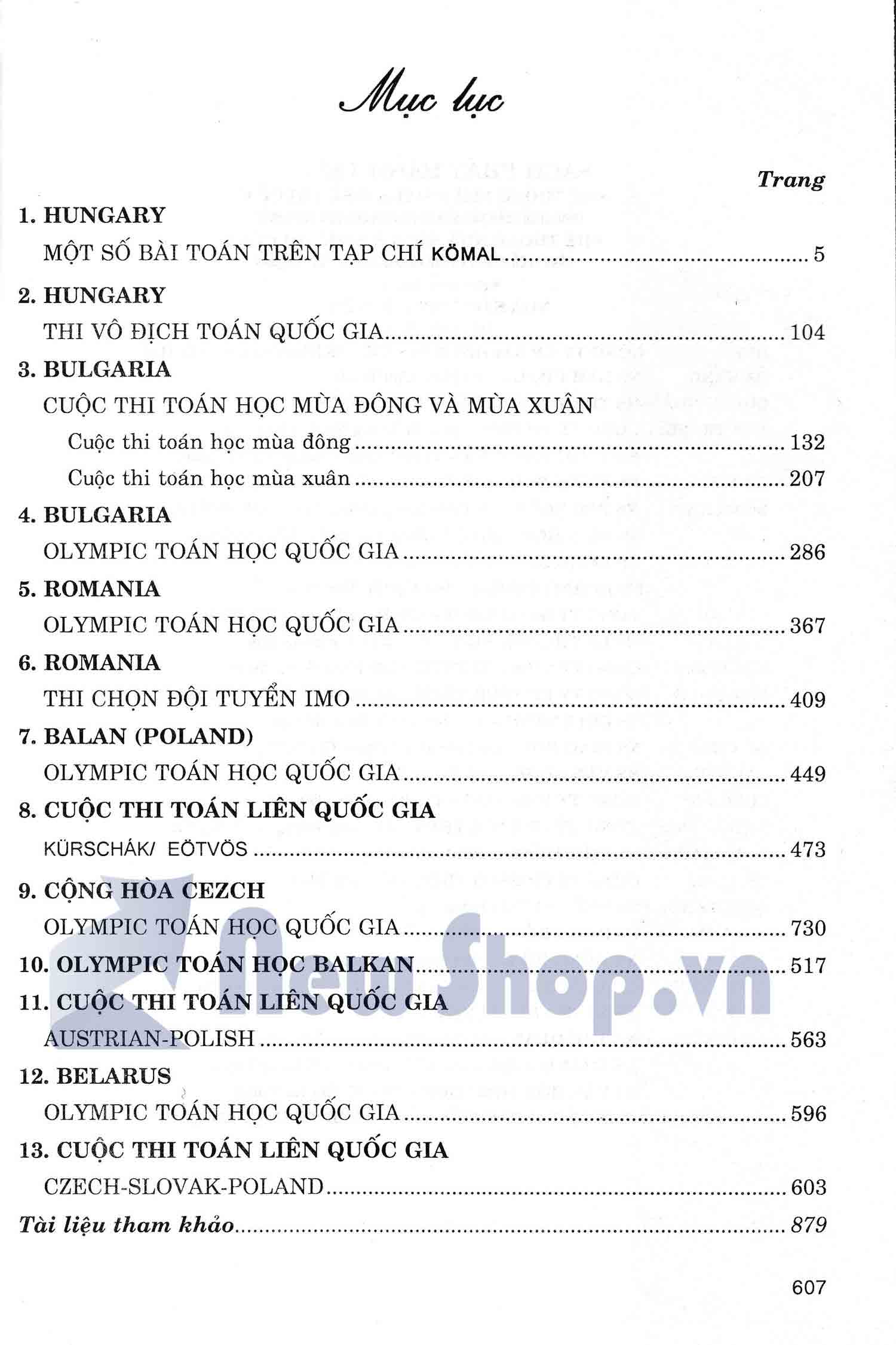 Tuyển Tập Olympic Toán Học Tại Các Nước Đông Âu Cuốn sách còn giới thiệu thêm một số bài toán trên các tạp chí như tạp chí Komal, một số cuộc thi liên quốc gia như
