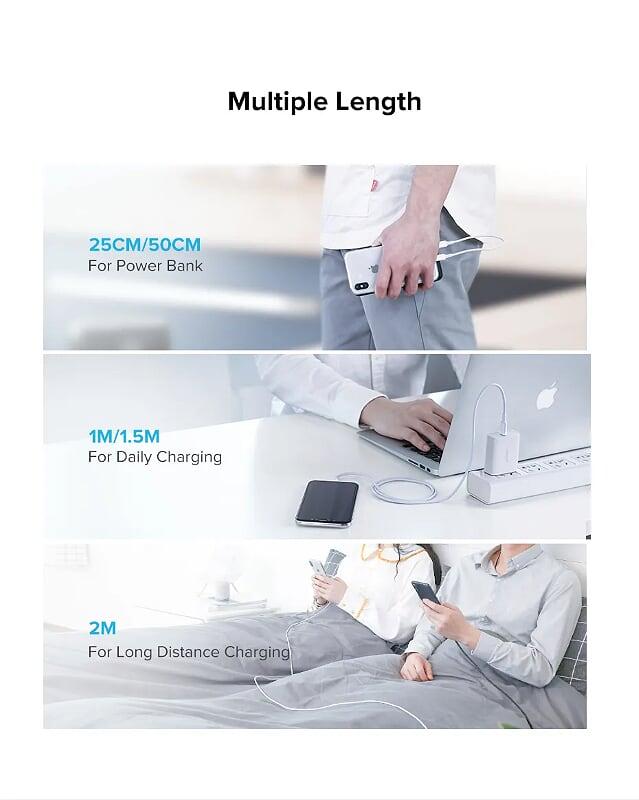 1. The USB C to USB C Power Cable delivers max 60W(20V/3A) fast charging to Type C/Thunderbolt 3 laptops/tablets/phones, when paired with 96W/87W/65W/45W/18W USB Power Delivery charger. Fully recharge MacBook Air 13" in 1.5h, as