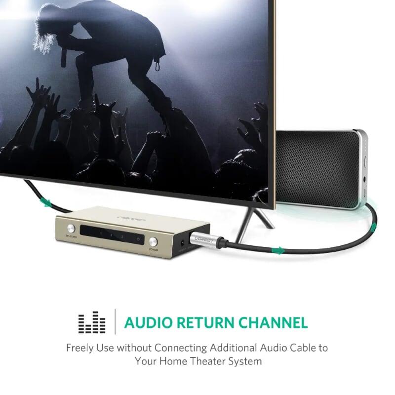 Ugreen 50709 Hdmi 2.0 3 In 1 Out Switcher Support 4K*2K@60Hz 1080P Cm188 1. Hỗ trợ âm thanh 7.1 và 5.1 - 192KHz 24bit 2. Hỗ trợ cáp HDMI đầu vào và ra 15M (tổng