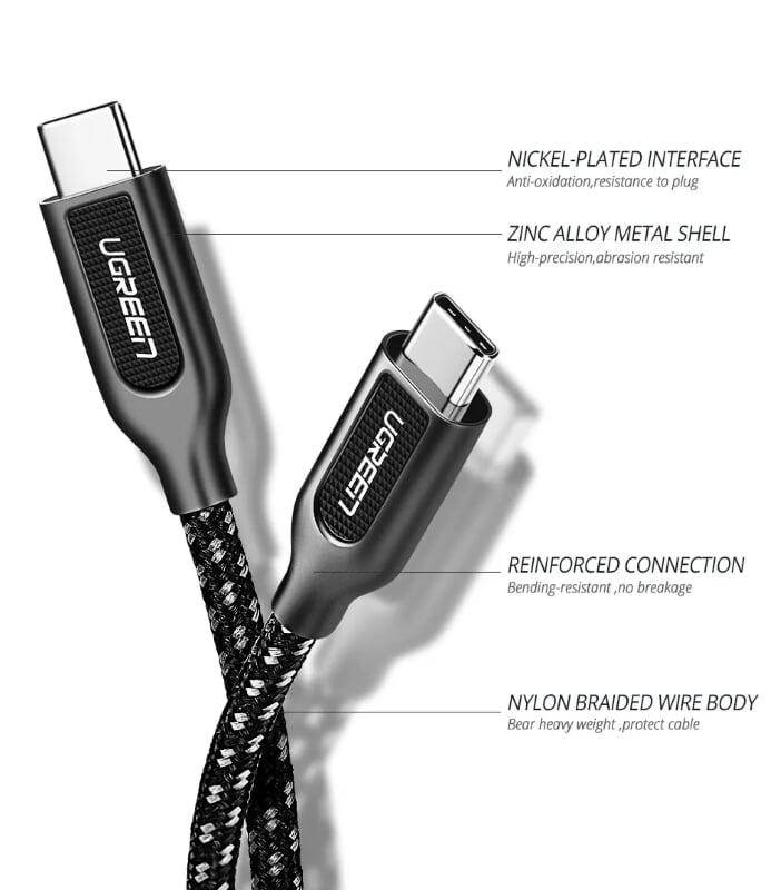 USB TYPE-C QC 3.0 100W UGREEN 80372 - Cáp sạc và truyền dữ liệu USB type C Ugreen 80372 - Hỗ trợ sạc nhanh PD QC 4.0, 3.0 công suất tối đa 100W, dòng 5A.