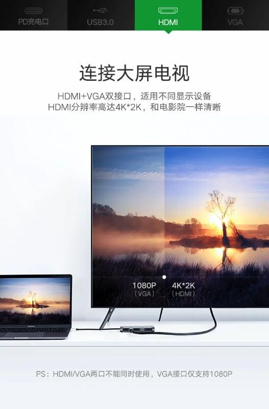 ✨Ugreen UG50319CM163TK Bộ chuyển đổi TYPE C sang 3 USB 3.0 + HDMI + VGA + hỗ trợ nguồn TYPE C - HÀNG CHÍNH HÃNG