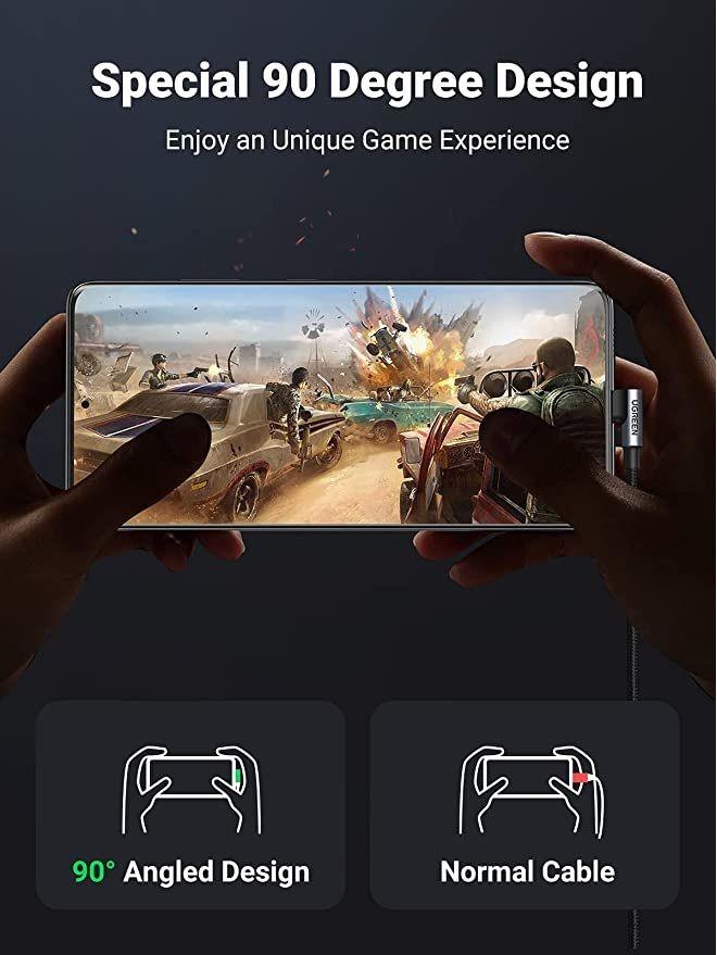 ✨Ugreen UG70875US176TK 3M màu Đen 3A Cáp sạc , truyền dữ liệu USB 2.0 sang USB-C vuông góc 90 độ dây dù - HÀNG CHÍNH HÃNG