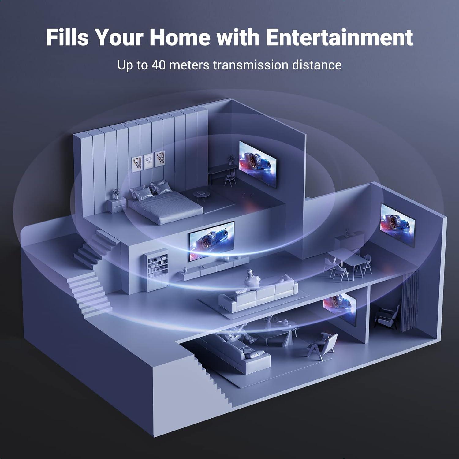 - Bộ chia HDMI Switch Vention 1 ra 2 cho phép chia một tín hiệu ra hai cổng HDMI, hỗ trợ đệm và khuếch đại tín hiệu đầu ra cho hình ảnh và âm thanh