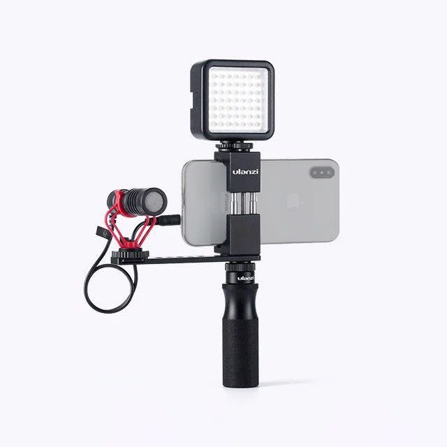 - Ulanzi U-40 là bộ sản phẩm combo tay cầm cho Vlogger gọn nhẹ, được dùng để livestream hoặc quay vlog bằng điện thoại smartphone, được trang bị đầy đủ đèn led, micro shotgun định hướng, tay