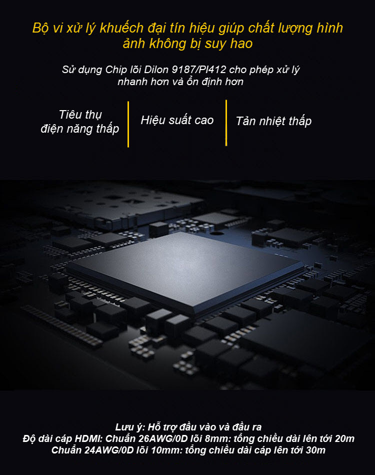 - Bộ chia HDMI Switch Vention 1 ra 2 cho phép chia một tín hiệu ra hai cổng HDMI, hỗ trợ đệm và khuếch đại tín hiệu đầu ra cho hình ảnh và âm thanh
