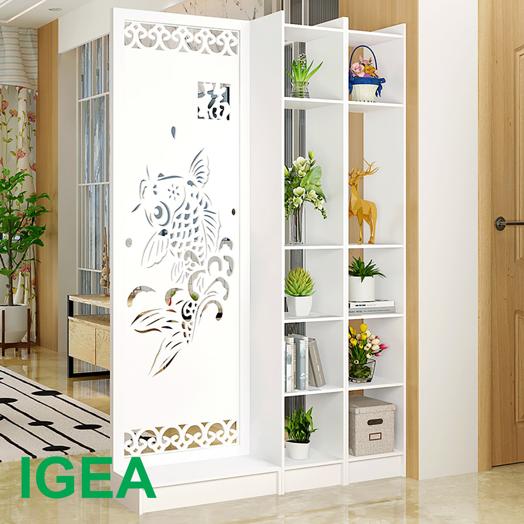 VÁCH NGĂN PHÒNG NGỦ, PHÒNG KHÁCH DI ĐỘNG NHIỀU HỌA TIẾT CHẤT LIỆU NHỰA PVC CAO CẤP TIẾT KIỆM DIỆN TÍCH TRANG TRÍ NHÀ CỬA Thông tin sản phẩm: – Kích thước: Cao 190 cm, ngang 90cm sâu 30cm - Chất liệu: NHỰA PVC chống thấm 8li, viền 16li. - Màu sắc: Màu trắng - Mô hình: Tháo lắp ráp ( có video chi tiết hướng dẫn lắp ráp) Công dụng: – Chia cắt không gian giữa các phòng nhưng không làm mất đi sự liên kết giữa các không gian. – Tiết kiệm được diện tích, tạo sự thông thoáng cho căn phòng. – Về phần kệ bạn có thể để những đồ vật trang trí hay trưng bày bộ sưu tập của mình. – Ngoài ra, trong phong thủy, tấm bình phong còn có nhiều tác dụng như hóa giải và làm chậm lại các dòng năng lượng xấu ở trong nhà, giảm bớt tính vượng của Hỏa khí trong nhà… Điểm khác biệt của sản phẩm: - Vách ngăn phòng ngủ, phòng khách, phòng thờ tiết kiệm diện tích, trang trí nhà cửa - Màu sắc vân gỗ mang lại phong cách sang trọng, cổ điển cho ngôi nhà của bạn - Mặt bàn phủ melamine, chống ẩm mốc, mối mọt chày xước. - Dễ dàng vệ sinh, không bám bụi, bám bẩn. - Tháo lắp, vận chuyển dễ dàng . - Độ bền, tính chịu lực cao, không bị cong vênh - An toàn, đảm bảo với môi trường và người dùng HUCHU Cam kết sản phẩm. - Hàng đạt chuẩn về mẫu mã.. - Chất lượng bền và đẹp. - Tuổi thọ sản phẩm cao. - Hình ảnh sản phẩm giống 100% KHÁCH HÀNG ĐƯỢC ĐỔI TRẢ . 01.Hàng bị lỗi do vận chuyển hoặc nhà sản xuất. 02.Hàng không đúng mẫu mã ,chất lượng . KHÁCH HÀNG KHÔNG ĐỔI TRẢ KHI . 01.Khách hàng chọn sai mẫu mã sản phẩm ,kích thước ,màu sắc."KHÁCH HÀNG CÂN NHẮC KHI CHỌN SẢN PHẨM" 02.Gửi lại hàng không đúng sản phẩm .