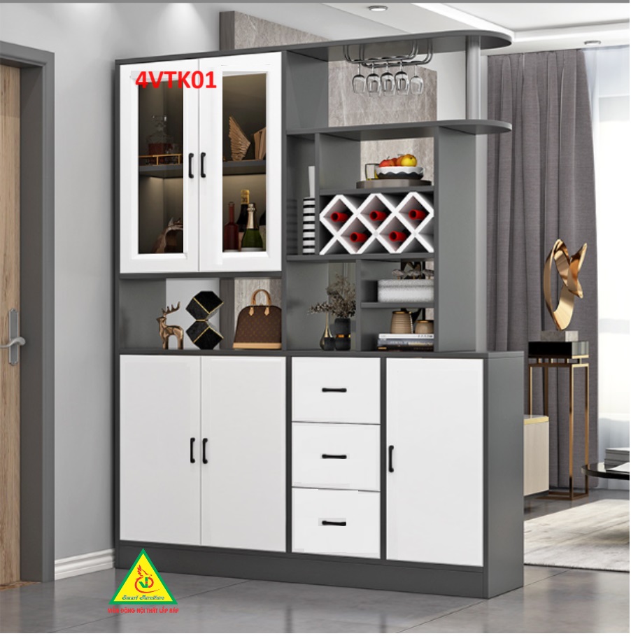 Vách ngăn kiêm tủ rượu trang trí thường có kết cấu và mẫu mã đa dạng. Một số mẫu vách ngăn được thiết kế với các kệ rượu và ngăn để trưng bày chai rượu vang của bạn một cách tinh tế và thuận tiện. Bạn có thể trưng bày các chai rượu với thiết kế đẹp mắt, tạo nên một góc trưng bày thu hút sự chú ý và tạo điểm nhấn cho không gian.