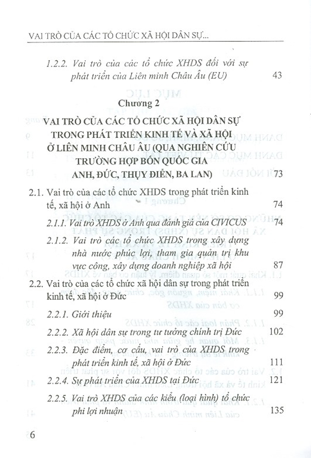 Chương 2: Vai trò của các tổ chức xã hội dân sự trong phát triển kinh tế và xã hội ở Liên minh Châu Âu (qua nghiên cứu trường hợp bốn quốc gia Anh, Đức, Thụy Điển, Ba Lan)