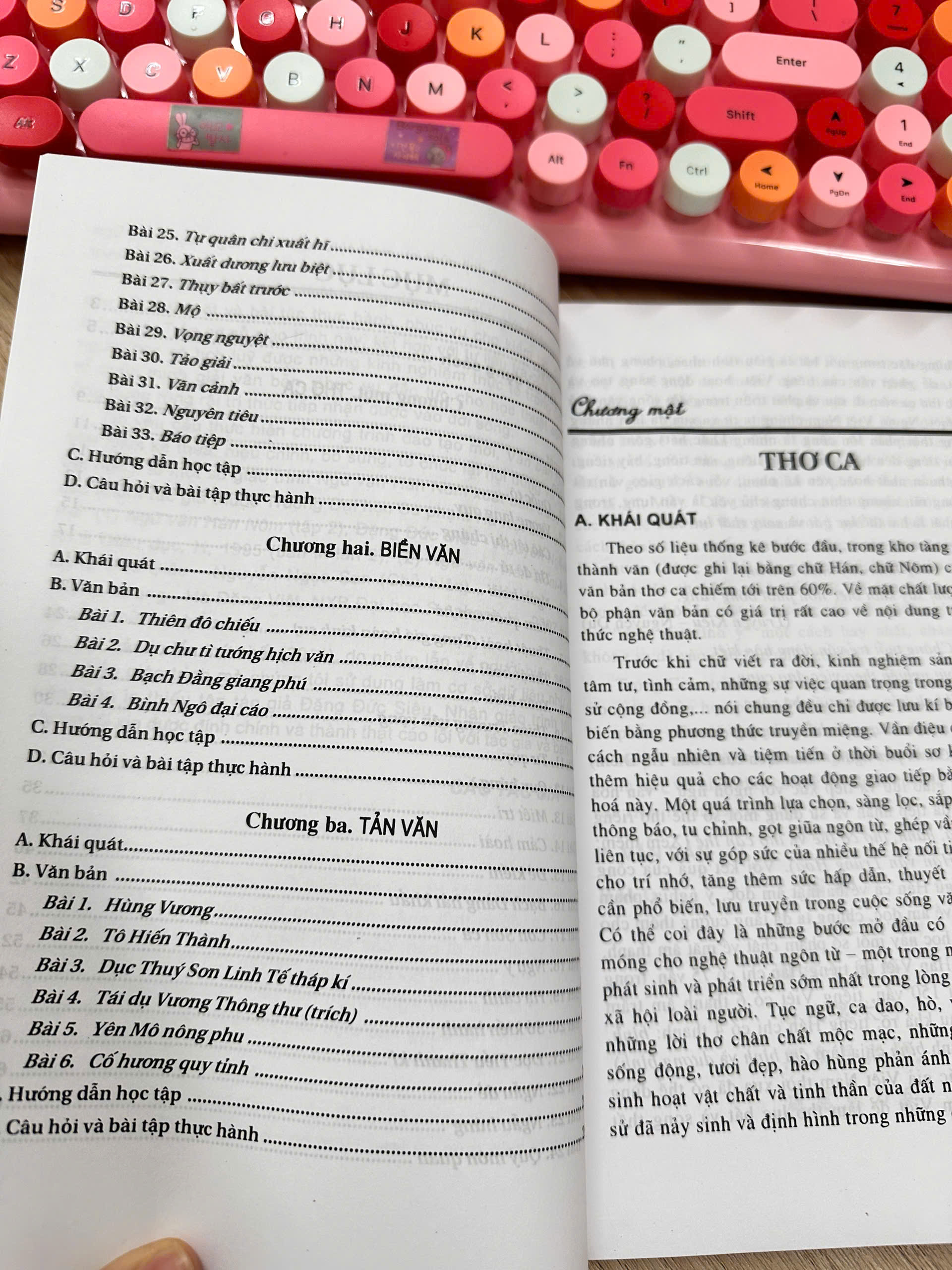 Cấu trúc cuốn sách gồm 3 phần: Văn bản thơ ca; Văn bản biền văn; Văn bản tản văn. Mỗi bài gồm 4 mục