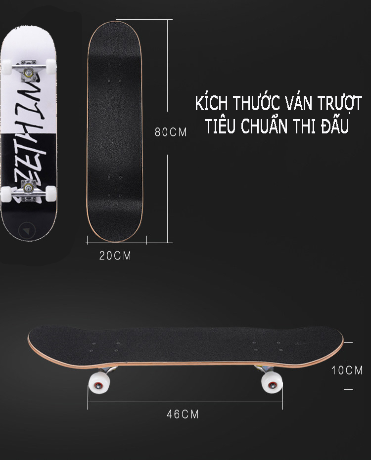 Ván trượt thi đấu mặt nhám thể thao size 80x20x10cm mẫu 01 Ván trượt skateboard gỗ phong ép cao cấp 8 lớp. Môn trượt ván là một trong những môn thể thao
