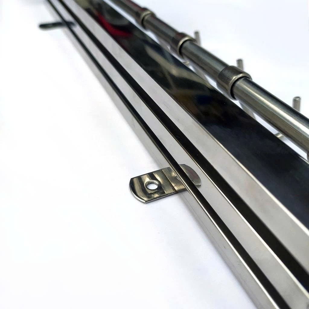 - Các thanh inox chừa khoảng cách thông thoáng làm cho dao,kéo, vật dụng treo trên khay mau chóng khô ráo.