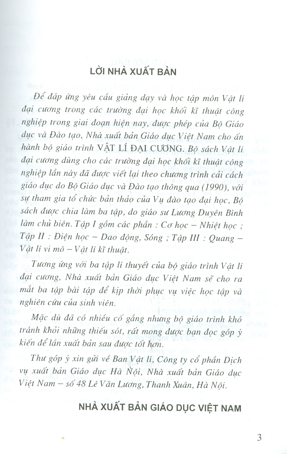 Để đáp ứng yêu cầu giảng dạy và học tập môn Vật lí đại cương trong các trường đại học khối kĩ thuật công nghiệp trong giai đoạn hiện nay, được phép của Bộ Giáo
