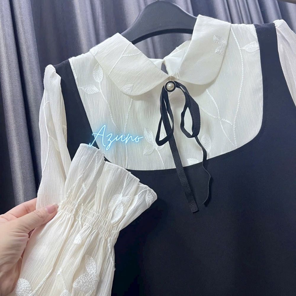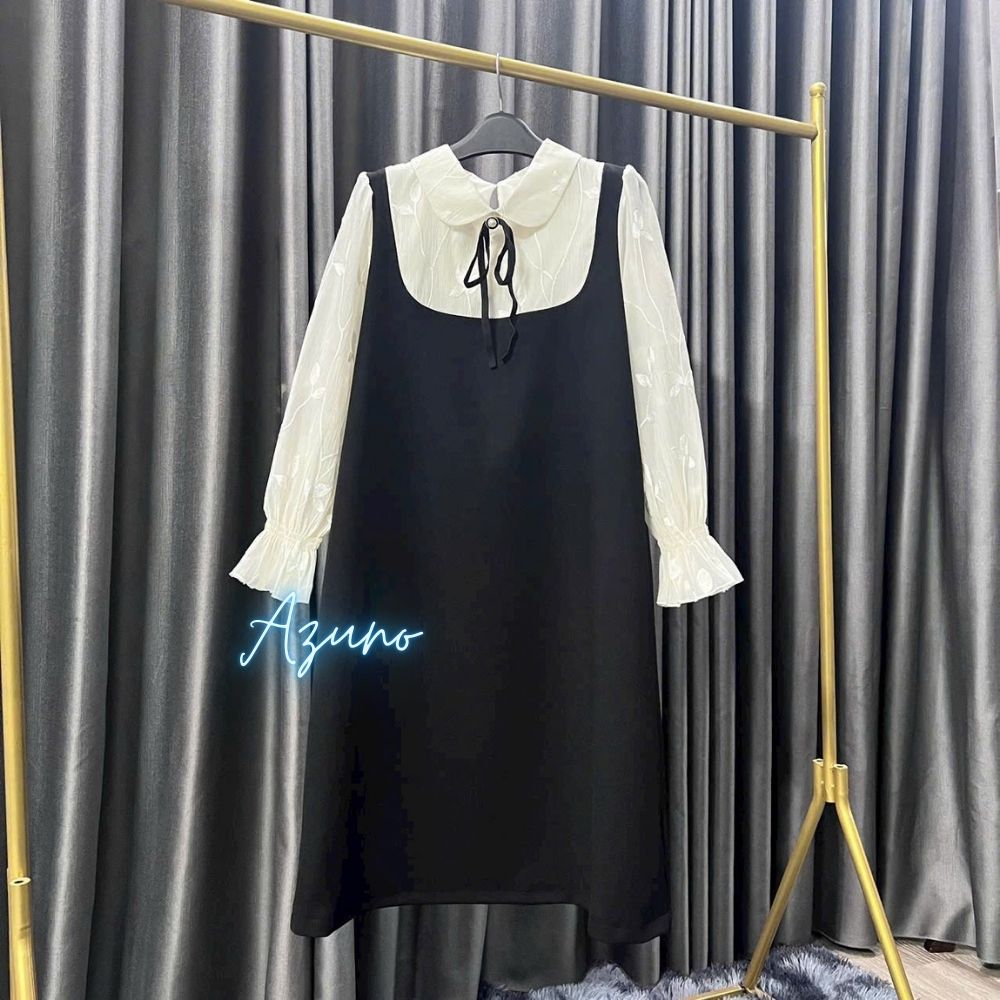 1. Thông tin chi tiết sản phẩm Váy bầu phối cổ tròn, đầm bầu đi làm, đi chơi, thiết kế sang trọng by Azuno Chất liệu chéo nhật phối trượt tằm xờ siêu mát tay