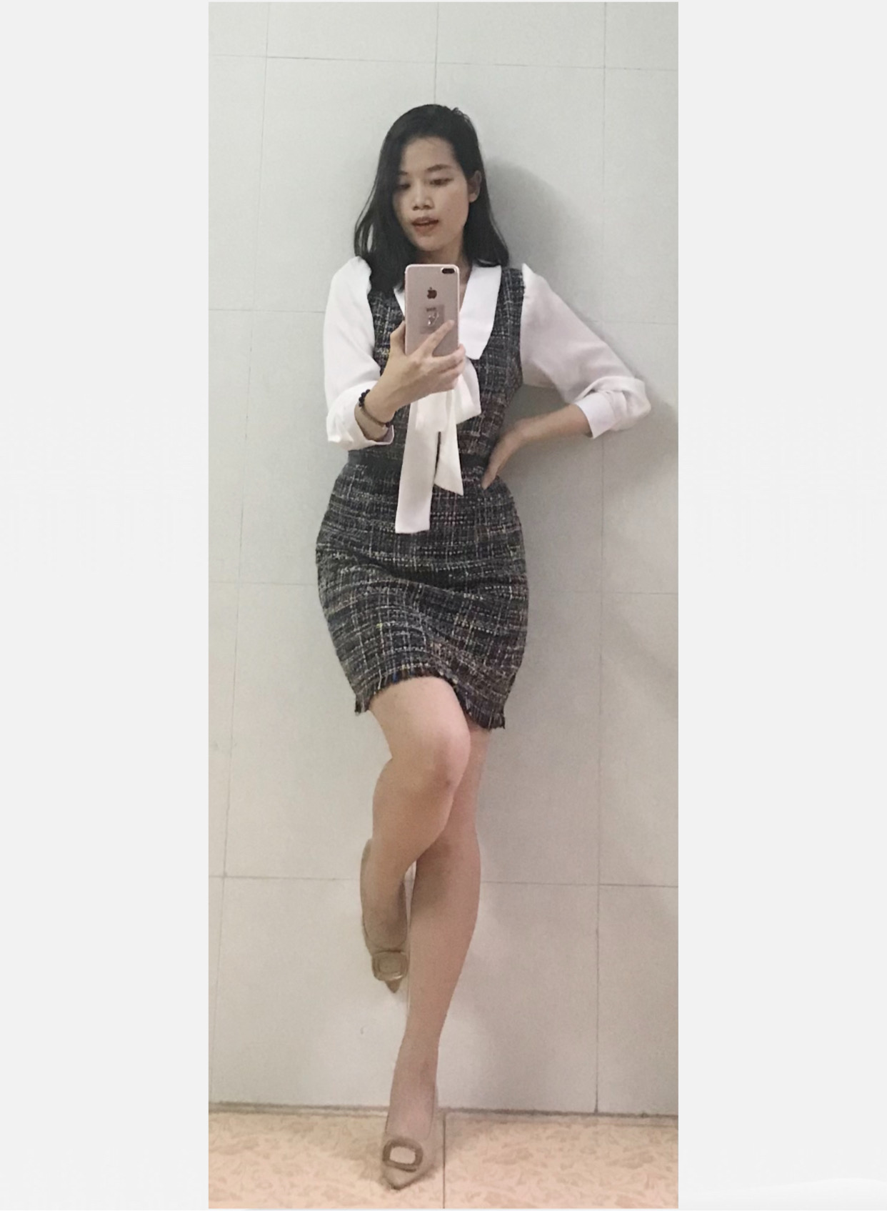 ✨Váy dạ tweed phối cổ nơ
