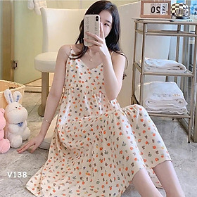 ✨Váy ngủ 1702 cotton hai dây dài dày dặn nhiều hoạ tiết dễ thương