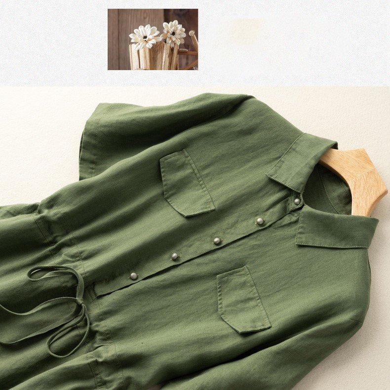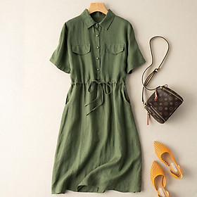 ✨Váy sơ mi dáng suông công sở cổ đức 2 túi sườn, chất đũi mát thời trang trẻ trung, phong cách Hàn Da74