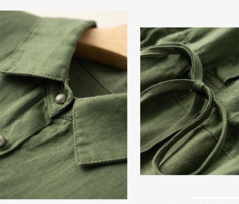 Chất liệu:  100% Linen. Được làm từ cây lanh, loài thực vật cần rất ít nước tưới và giúp thúc đẩy đất đai màu mỡ cũng như đa dạng sinh học. Sợi vải rất thoáng