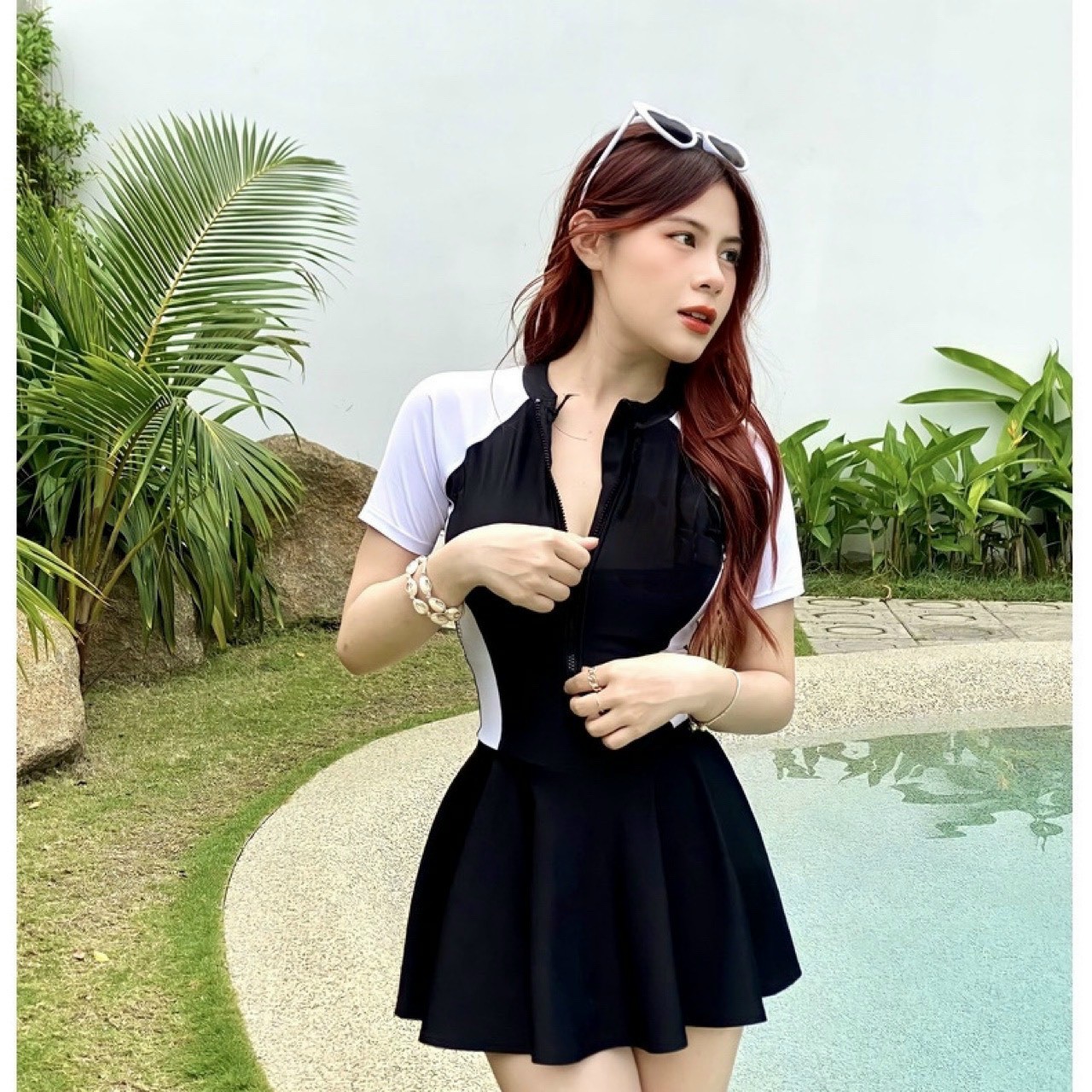 Item không thể bỏ qua cho các cô gái yêu thích bơi lội và muốn nổi bật trong những chuyến đi biển! Bộ đồ bơi liền thân quần đùi váy từ Đậu Đỏ Bikini với