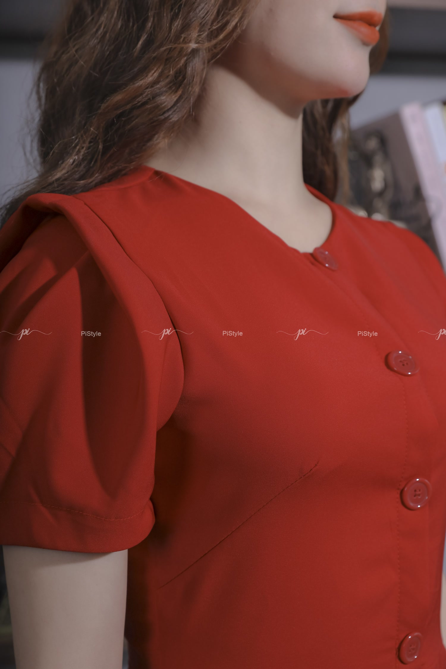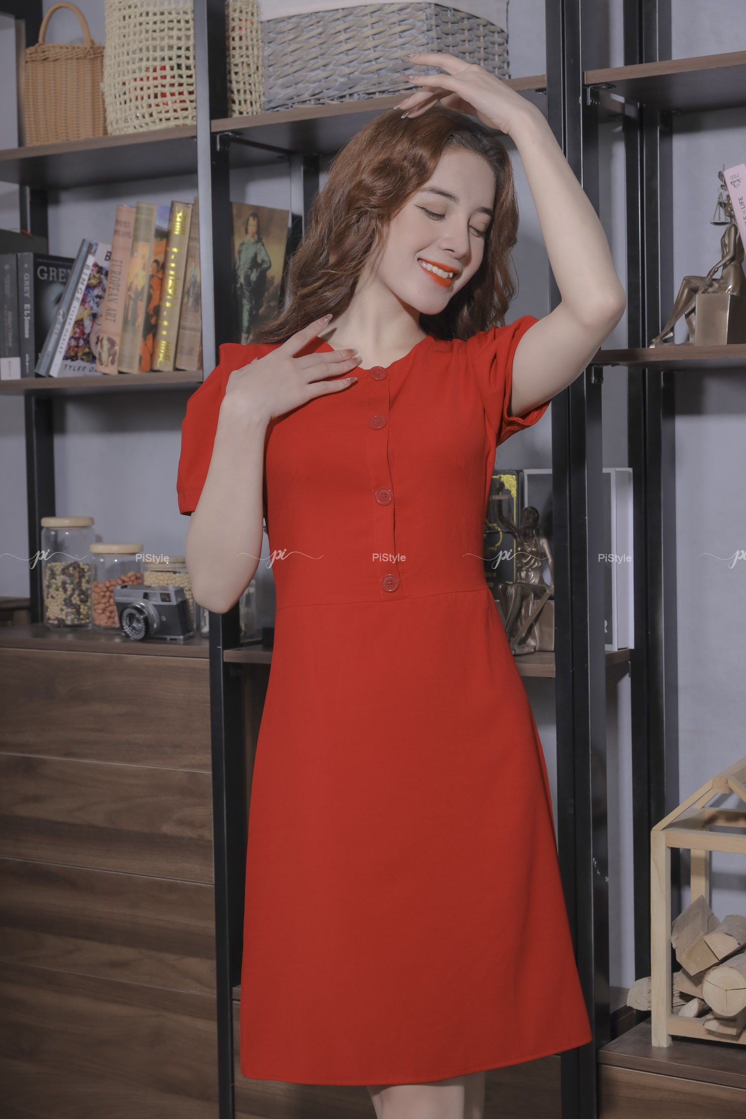 Váy Vải Trơn Cúc Trước Màu Đỏ Pi Home Of Beauty Made With Love 23V059