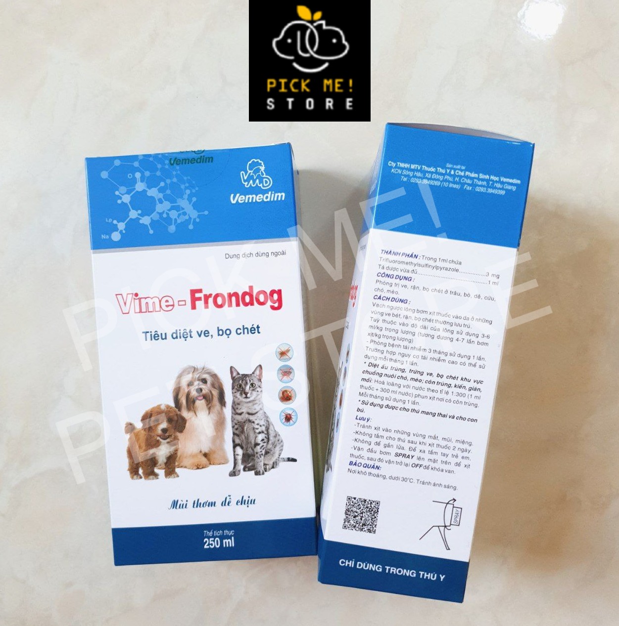 Vemedim Vime - Frondog 250ml | Xịt Ve Rận Bọ Chét Cho Chó Mèo Khử Khuẩn Chuồng Nuôi CÁCH DÙNG Vạch ngược lông, xịt vào da ở những vùng ve, rận, bọ chét thường