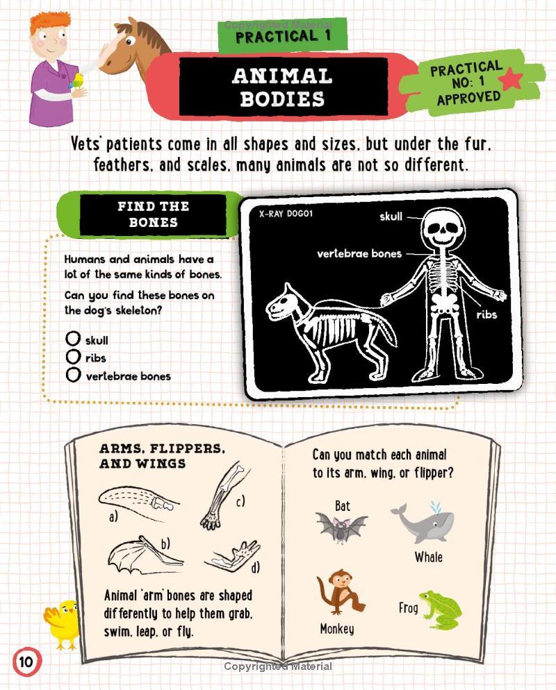 Complete simple tasks to get real, hands-on experience while you explore all the different kinds of vet jobs and learn how to help animals stay healthy. Can you spot the poorly lion in the wildlife park? Or tell when a dog is happy or sad? Or even discover how to give a turtle a bath? Look inside to find out!