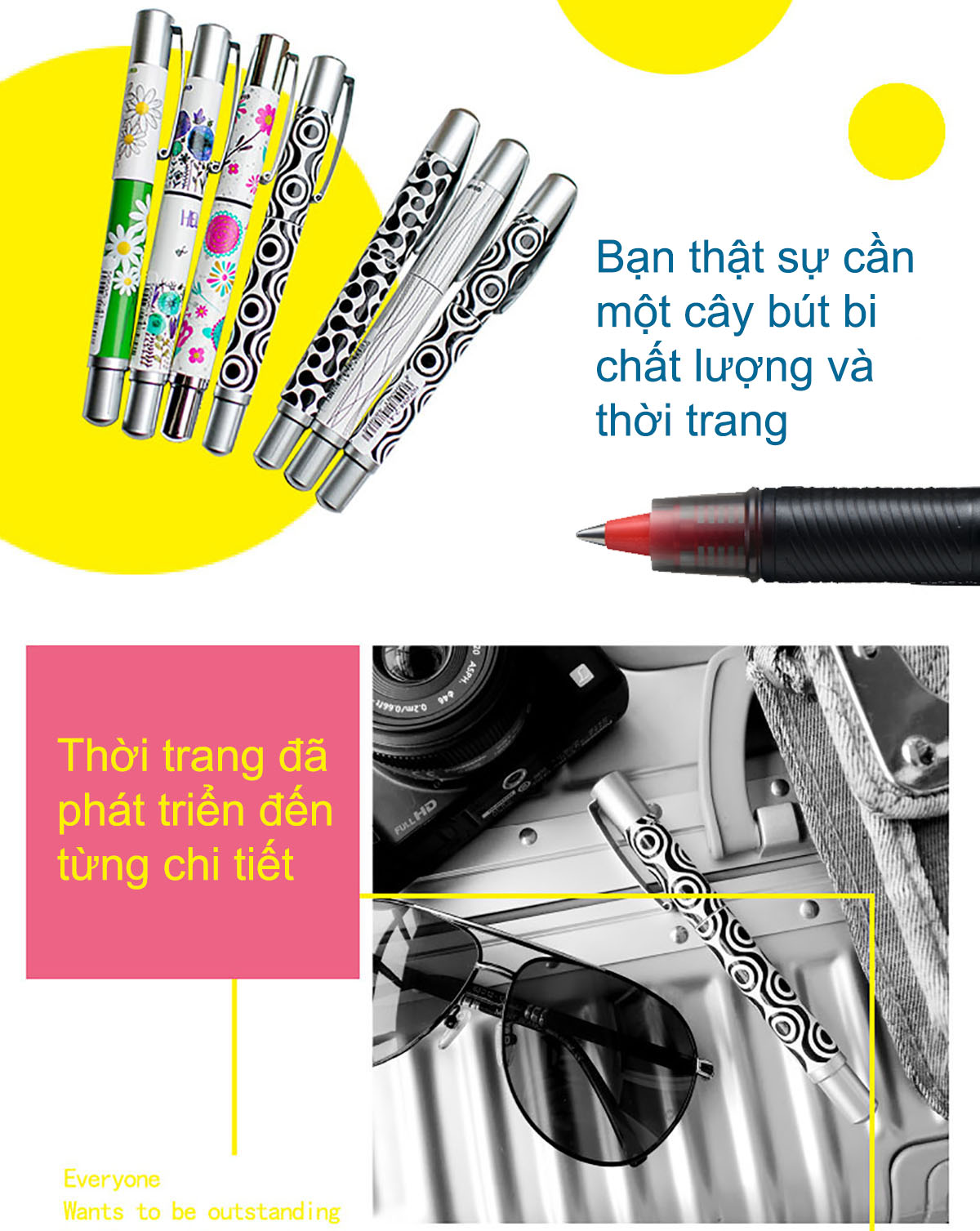 - Màu sắc :Vàng - Đặc điểm : +Thiết kế bút nhẹ, vừa tay cầm + Công nghệ mực Free Ink System giúp mực chảy đều, không bị lem mực, tạo nét viết êm trơn