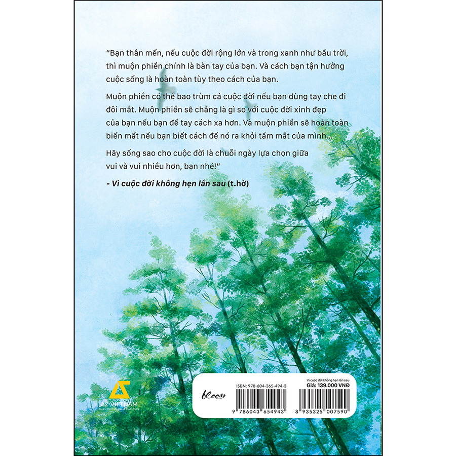 Vì cuộc đời không hẹn lần sau là quyển sách tập hợp những mẩu chuyện kể không của riêng ai, đằng sau mỗi câu chuyện là một một lời động viên tích cực, một niềm tin vững chãi gửi gắm đến mỗi cuộc đời đang tồn tại.